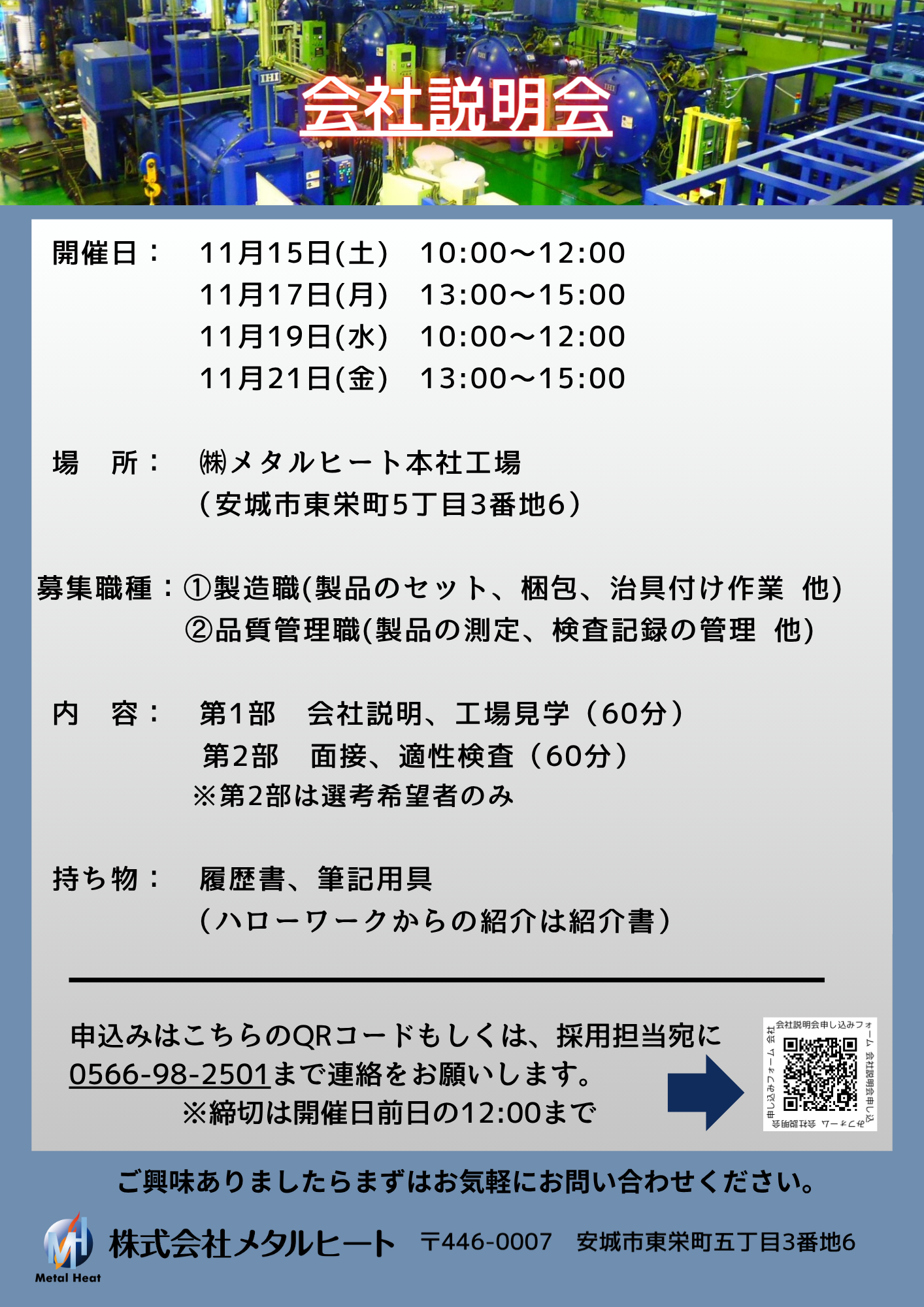 現在、メタルヒートでは中途採用を積極的に行っています。